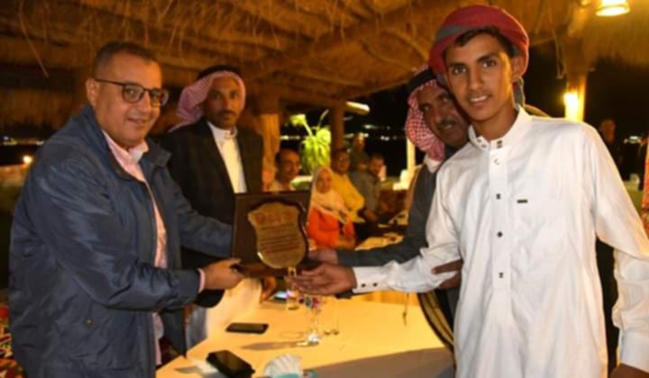 وقام المحافظ خلال اللقاء بتكريم أحد شباب البدو لمشاركته المشرفة خلال إحدى سباقات الهجن التي عقدت بالمملكة العربية السعودية ضمن المشاركات الجادة لأبناء المحافظة في سباقات الهجن بالدول العربية الشقيقة وقرر صرف مكافأة مالية تشجيعا وتحفيزا له
